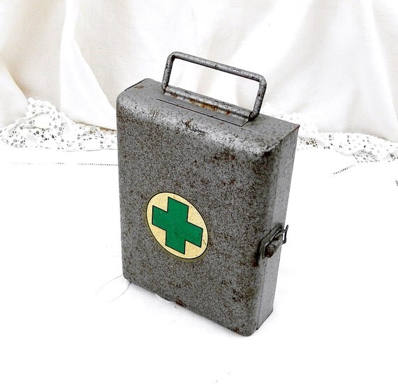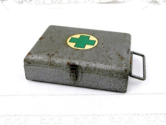 20% OFF coupon on Vintage French Mid Century Metal First Aid Grey Tin, Industrial, Retro, Home, Interior, Brocante, Hipster, Medical, Nursing, Green Cross by VintageDecorFrancais
