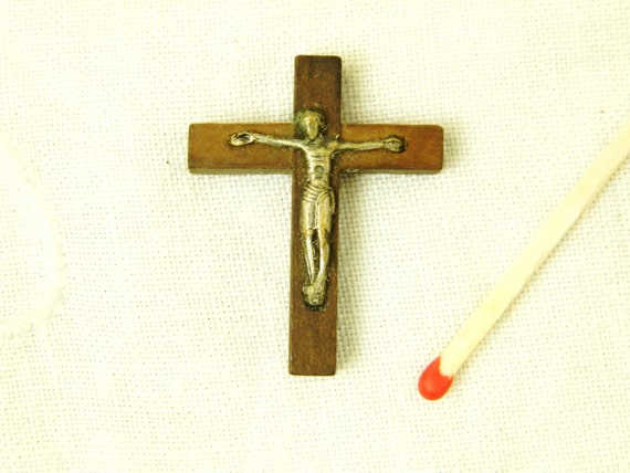 20% OFF coupon on Vintage French Mid Century Wooden and Metal Crucifix / Religious Jewelry / Christian Cross / Jesus / Christ / Catholic / Church / Jewellery by VintageDecorFrancais