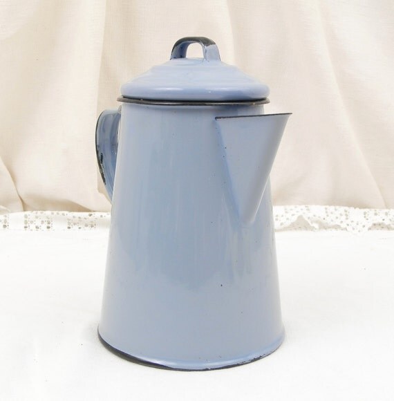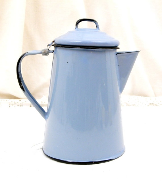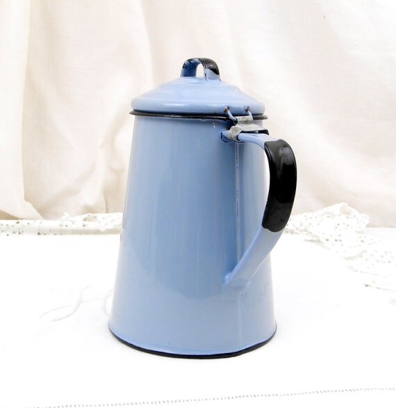 20% OFF coupon on Vintage French Pale Blue Enamelware Cafetière Excellent Condition, Enamel Metal Coffee Pot Sky Blue from France, Country Cottage Decor by VintageDecorFrancais