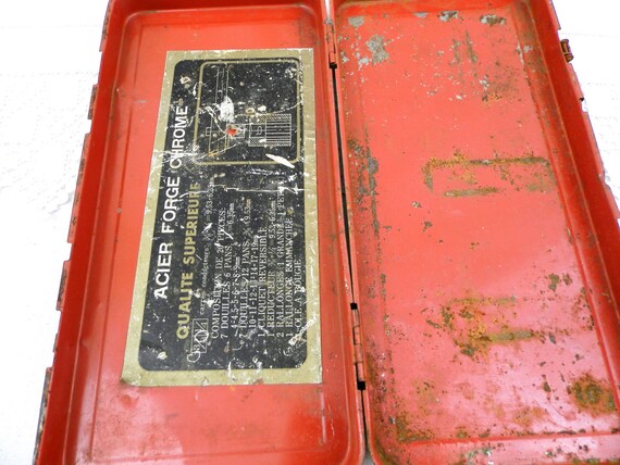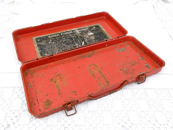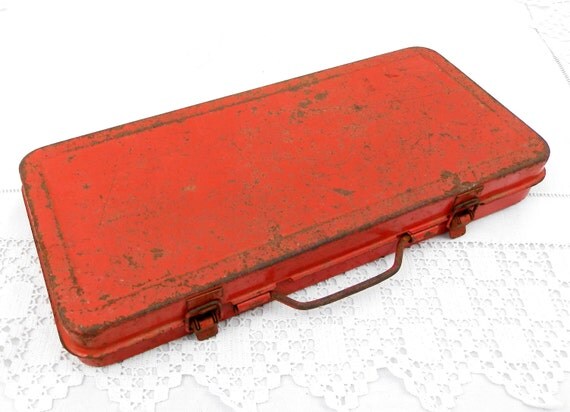 20% OFF coupon on Vintage French Red Metal Tool Kit Box Rusty Distressed Patina, Retro, Garage, Decor, Home, Interior, Brocante, Industrial, Upycle, Prop by VintageDecorFrancais