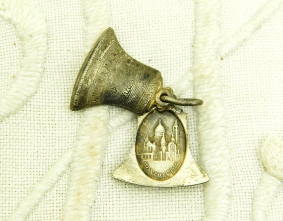 20% OFF coupon on Vintage French Religious Pendant in the Shape of a Bell which Slides Open and inside is an Image of Christ and Monmartre / Religious Jewelry by VintageDecorFrancais