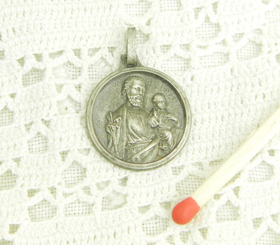 20% OFF coupon on Vintage French Religious Silver Medal Saint Joseph and Baby Jesus / Christian / Religion Charm Journey / Catholic / Catholic / Church by VintageDecorFrancais