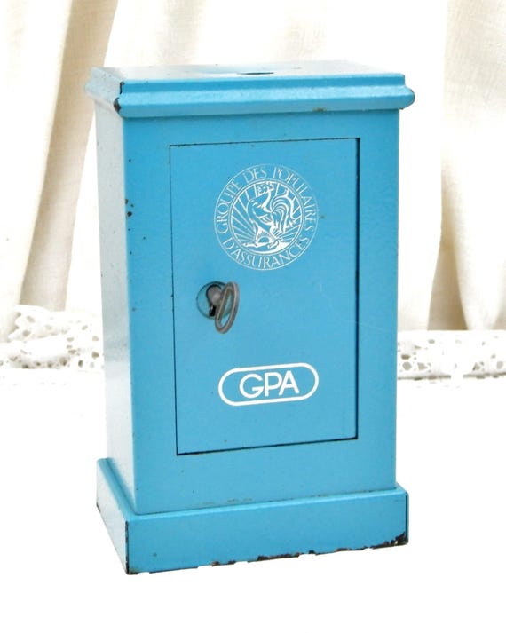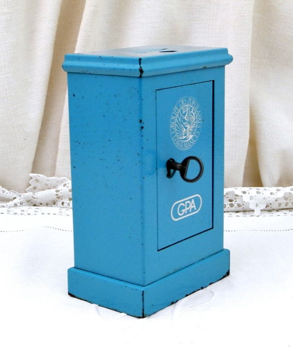 20% OFF coupon on Vintage French Replica Blue Metal Cash Safe " Coffre Fort" Coin Bank / Still Bank/ Piggy Bank, Money Box from France Promotional Gift GPA by VintageDecorFrancais