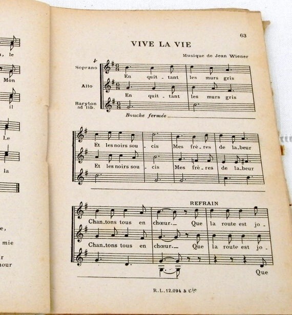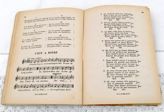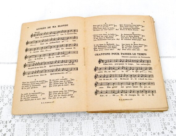 20% OFF coupon on Vintage French Song Book " La Cle des Chants" 100 Songs lyrics Verse and Music Scores from 1940s, Sheet Music from France, Brocante Singing by VintageDecorFrancais