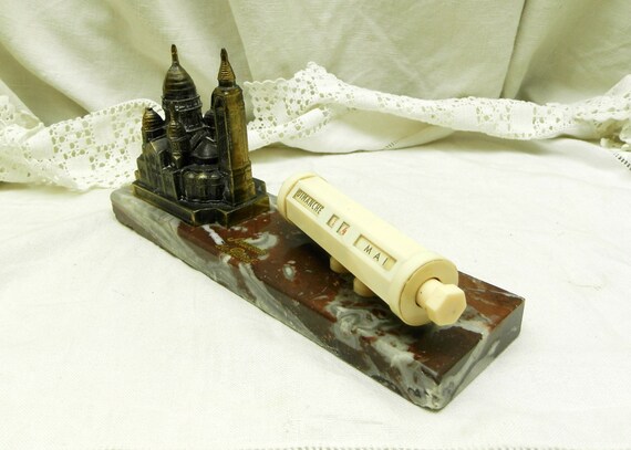 20% OFF coupon on Vintage French Souvenir de Paris Perpetual Calendar with Statue of the Sacre Coeur / French Midcentury Decor/ Parisian Decor/ Souvenir/ Home by VintageDecorFrancais