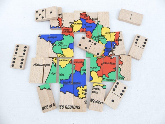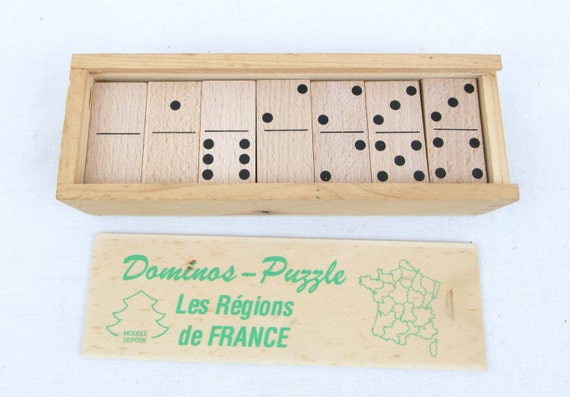 20% OFF coupon on Vintage French Wooden Boxed Set of Dominoes and Puzzle of France / Vintage Decor / French Games / Toys / Retro Home Interior / European by VintageDecorFrancais