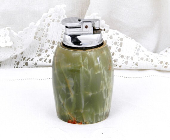 20% OFF coupon on Vintage French Working Mid Century Green Onyx Stone Table Cigarette Lighter, Semi Precious Stone, Retro Home Interior, Man Cave Tobacciana by VintageDecorFrancais