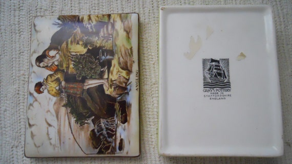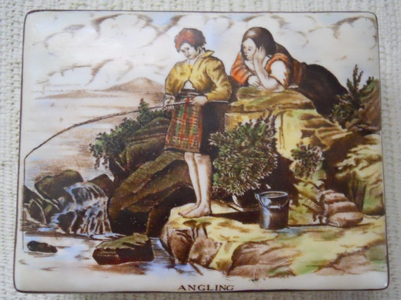 20% OFF coupon on Vintage Gray's Pottery Trinket Box, Hand-Painted Box with Fishing Scene by LeesVintageJewels