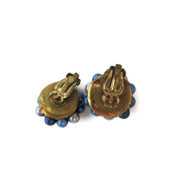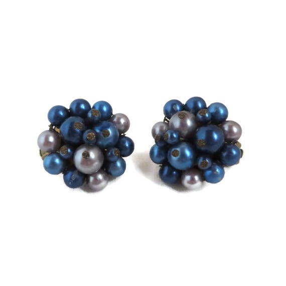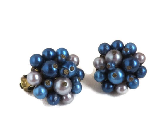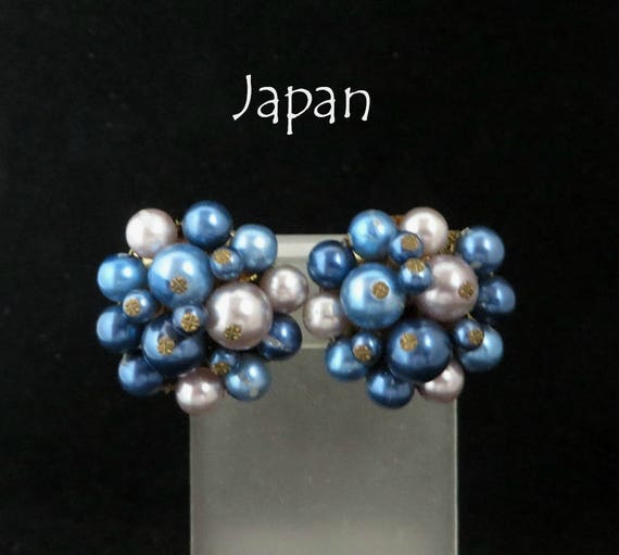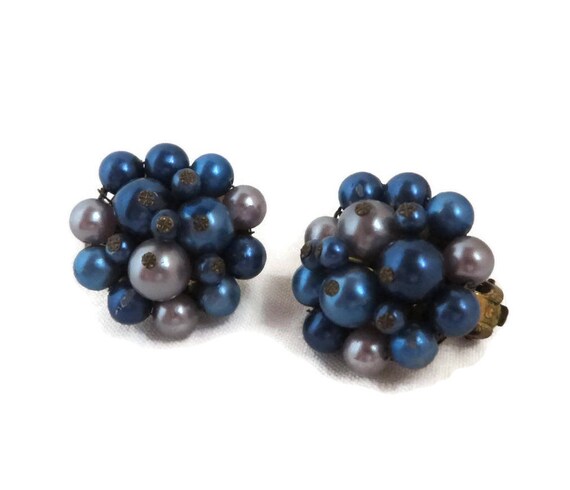 15% OFF coupon on Vintage Japan Earrings, Blue and Gray Cluster Clip-on Earrings