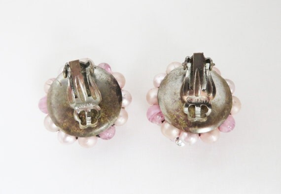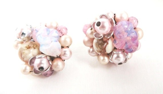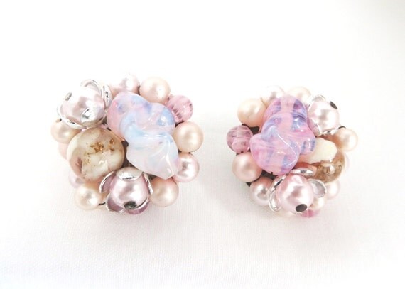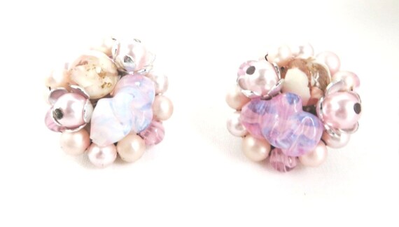 15% OFF coupon on Vintage Japan Pink Cluster Earrings, Faux Pearl Bead & Art Glass Clip-ons by LeesVintageJewels