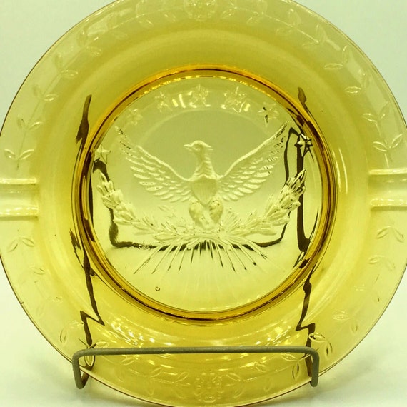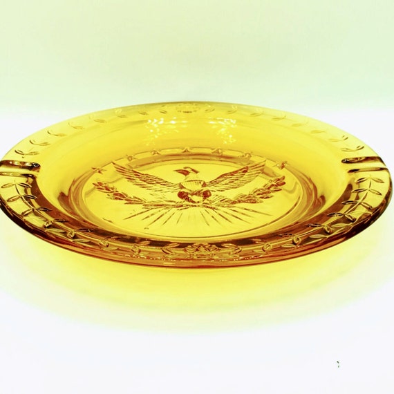 15% OFF coupon on Vintage L.E. Smith Heritage Amber Glass American Eagle Cigar Ashtray - Tobacciana- Cigar Smoker Gift For Him by NostalgiaDenClassics