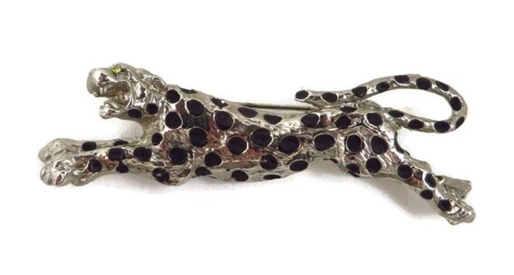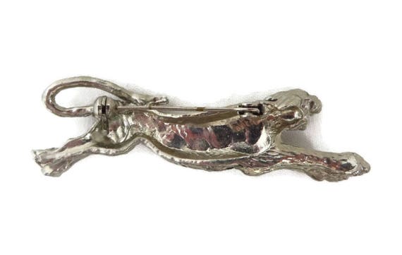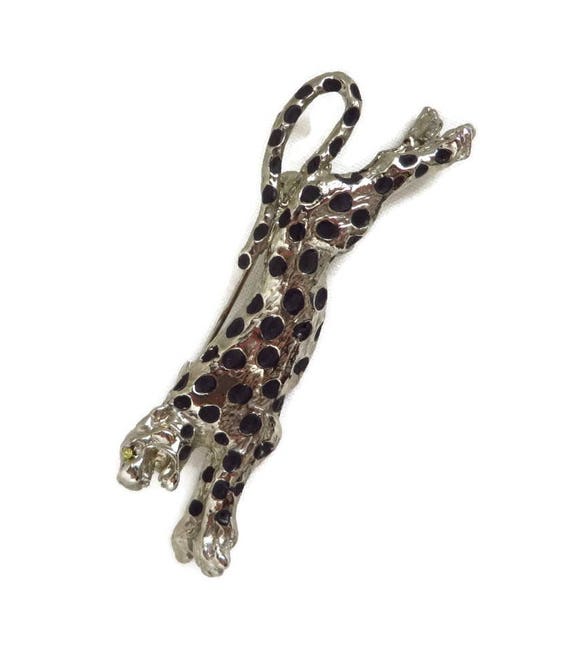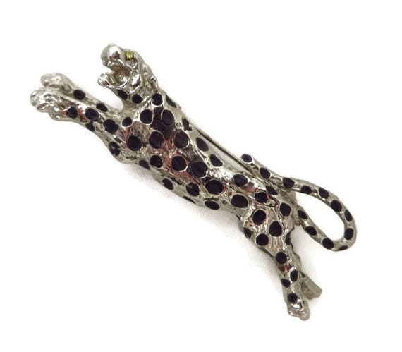 15% OFF coupon on Vintage Leopard Brooch Silver Tone Leopard Pin 1970s Animal Pin Wide Enamel Brooch by LeesVintageJewels