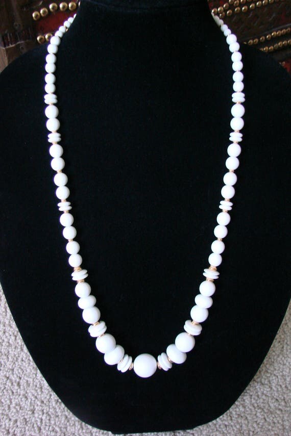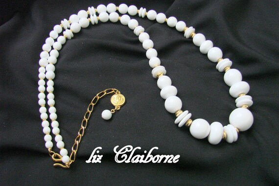 15% OFF coupon on Vintage Liz Claiborne White Lucite Bead Necklace / Goldtone / Designer Signed / Graduated Beads / Jewelry / Jewellery