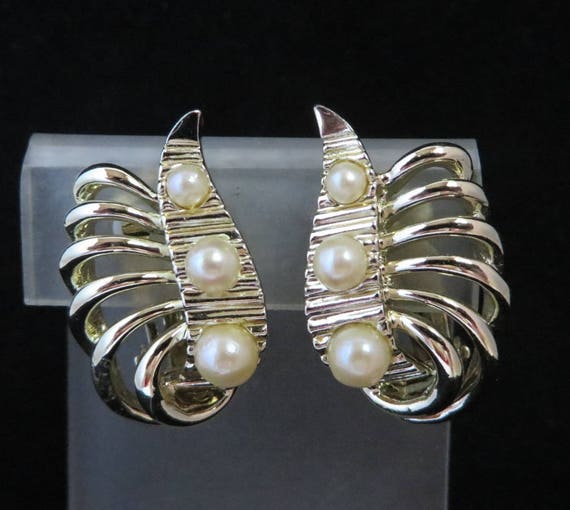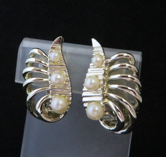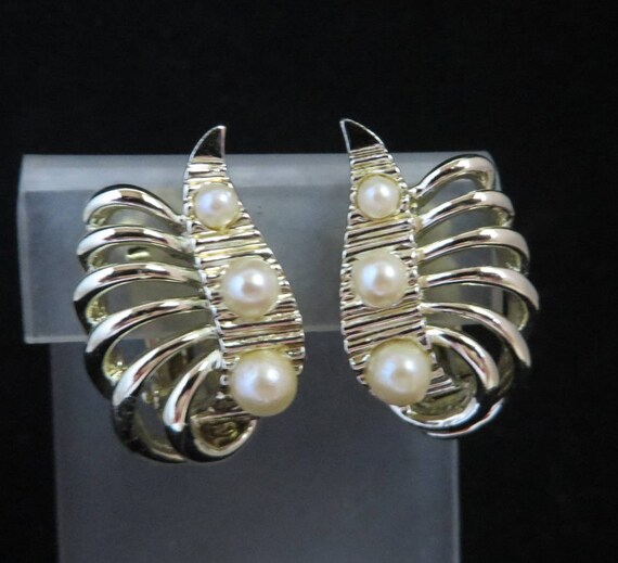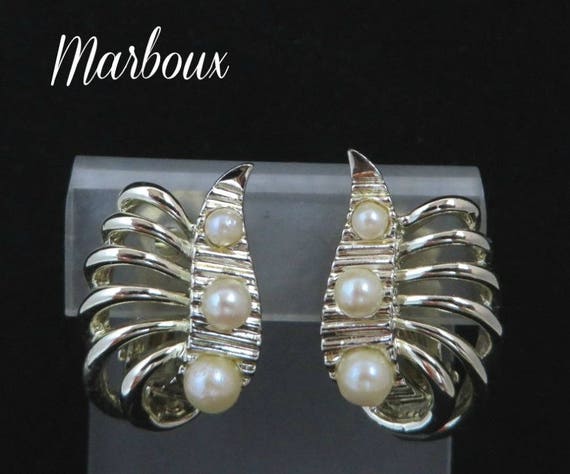 15% OFF coupon on Vintage Marboux Earrings, Marcel Boucher Earrings, Goldtone Faux Pearl Earrings, Signed Designer Clip-on Earrings by LeesVintageJewels