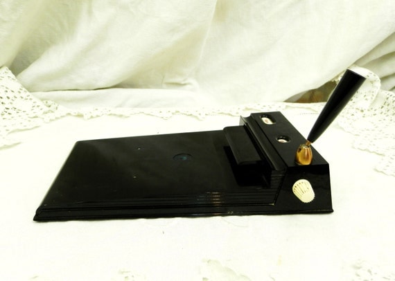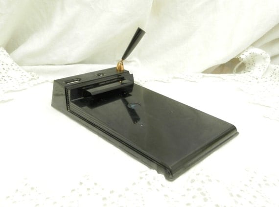 20% OFF coupon on Vintage Mid Century 1960 Perpetual Calendar Note Pad Holder and Pen Holder, Retro Office Black Desk Tidy, 60s Brocante Decor from France by VintageDecorFrancais
