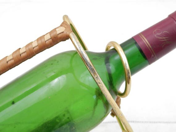 20% OFF coupon on Vintage Mid Century 1960s Golden Anodized Metal and Raffia Woven Wine Bottle Holder / Server, Retro 60s Dinner Party Accessory From France by VintageDecorFrancais