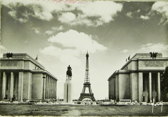 20% OFF coupon on Vintage Mid Century French Black and White Postcard, Eiffel Tower, Paris / Parisian / Retro Vintage Home interior / French Country Decor by VintageDecorFrancais