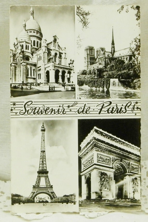 20% OFF coupon on Vintage Mid Century French Black and White Postcard, Eiffel Tower, Sacré Coeur , L'Arc de Triomphe, Notre Dame, Paris / Parisian / Retro by VintageDecorFrancais