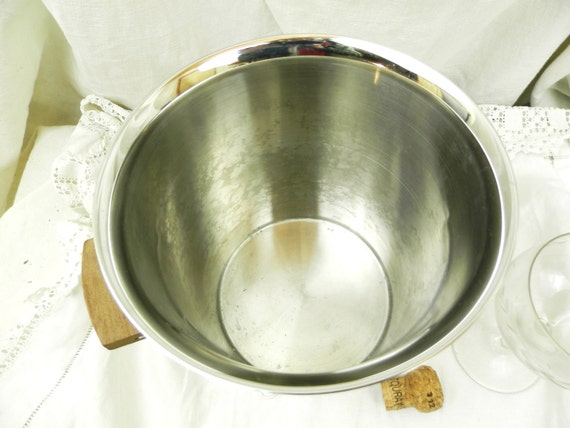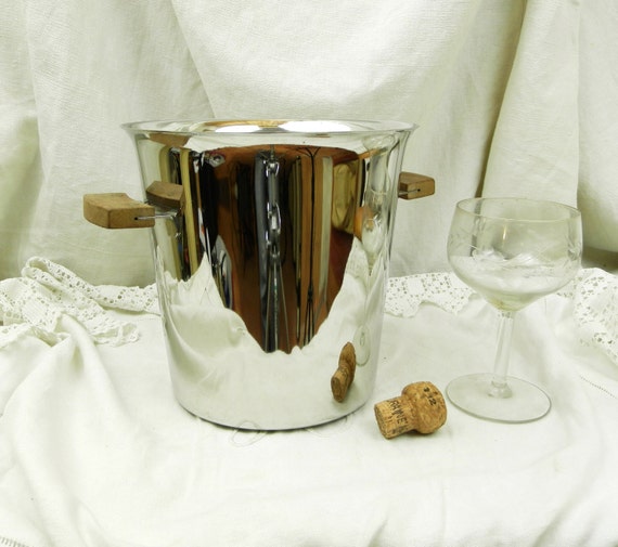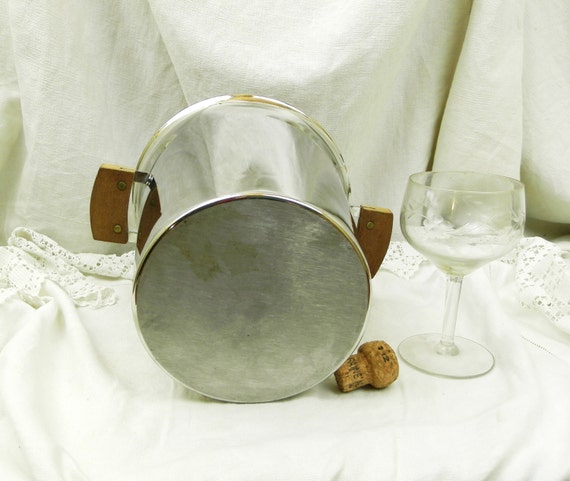 20% OFF coupon on Vintage Mid Century French Stainless Steel Champagne and Teak Handles Ice Bucket, Retro 1960s Metal Wine Cooler from France, Barware by VintageDecorFrancais