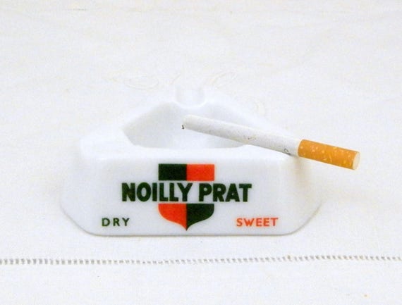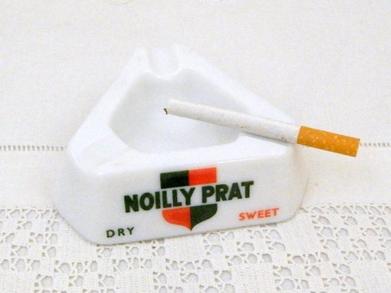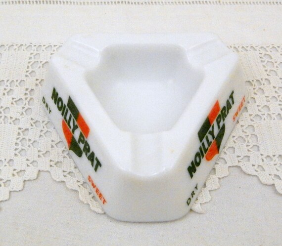 20% OFF coupon on Vintage Mid Century French White Milk Glass Nouilly Prat Promotional Advertising Ashtray, 60s, 70s Retro Collectible Tobacciana from France by VintageDecorFrancais