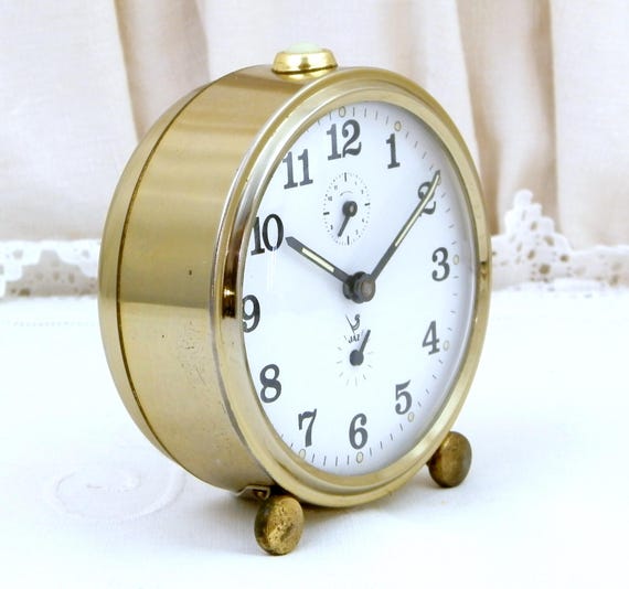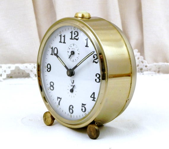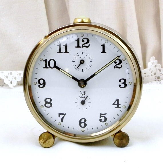 20% OFF coupon on Vintage Mid Century Working Mechanical Wind-Up Alarm Clock by Jaz, Bedside French Clock, 1950 Retro Timepiece from France by VintageDecorFrancais