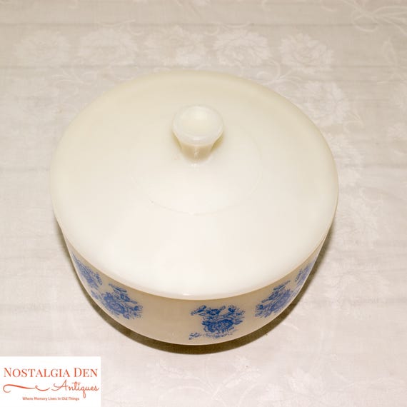 15% OFF coupon on Vintage Milk Glass Bowl w/ Lid -1.5 Qt Federal Glass Heat Proof | Cornflower Pattern by NostalgiaDenClassics