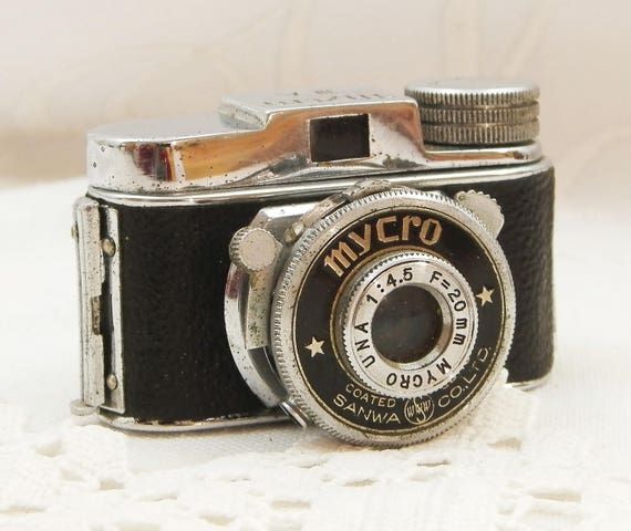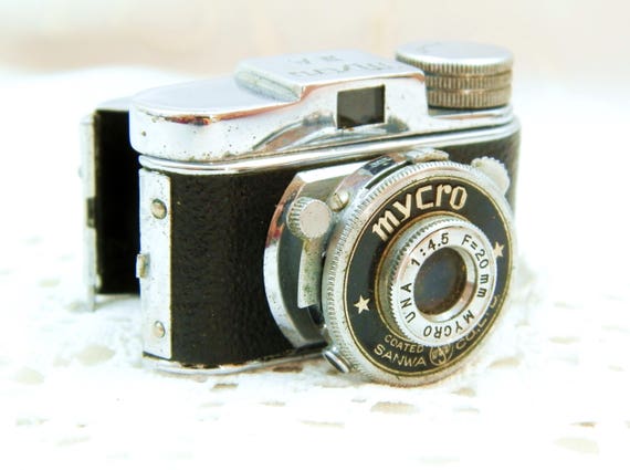20% OFF coupon on Vintage Miniature Photographic Mycro III A Sanwa Camera with Leather Case, Subminiature F=20 mm, Retro Analog Tiny Small Photo Camera 1950s by VintageDecorFrancais