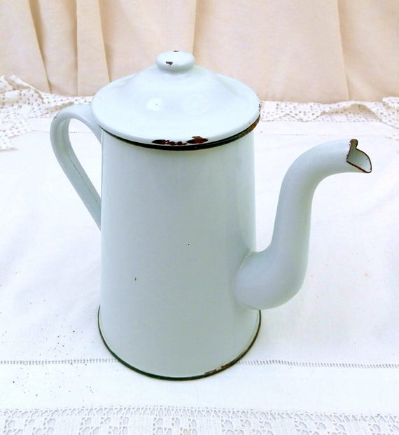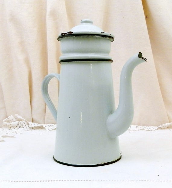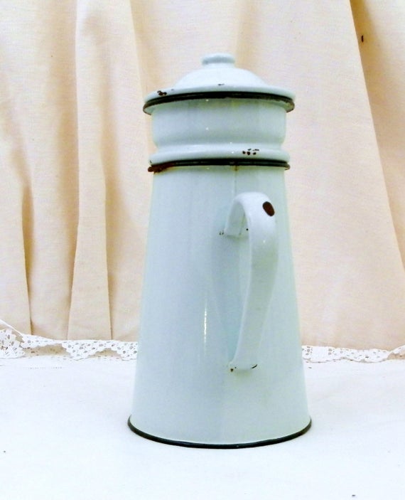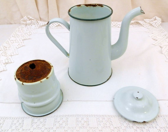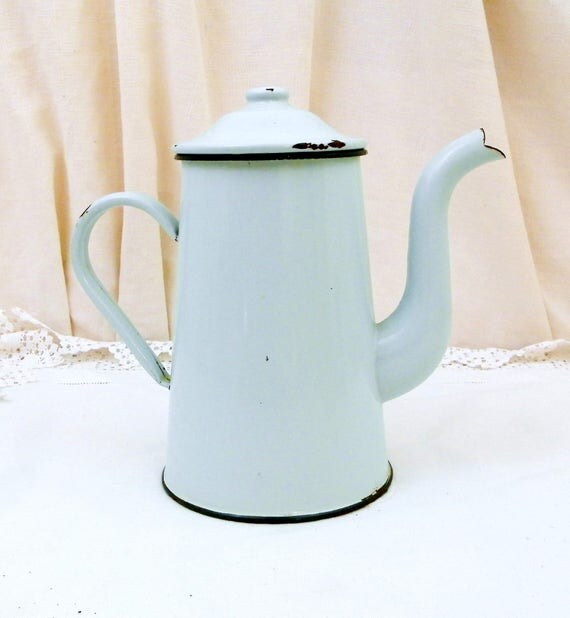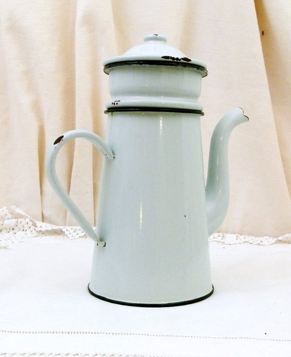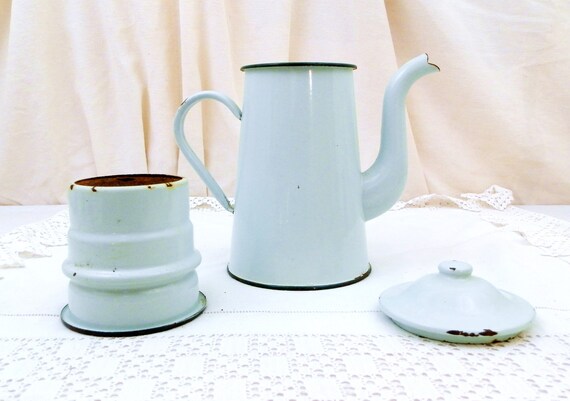 20% OFF coupon on Vintage Mint Green Enamel French 3 Piece Coffee Pot with Goose Neck Spout, Enamelware Pour Over Cafetiere from France, Retro French Country by VintageDecorFrancais