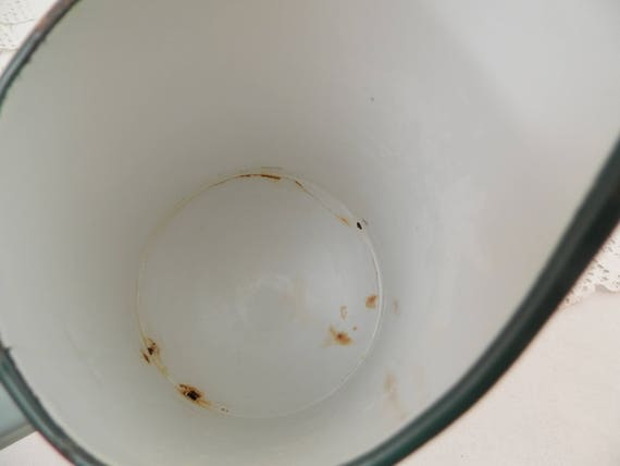 20% OFF coupon on Vintage Mint Green Enamel French Pitcher, Enamelware Pale Green Jug, Rustic Rural Country Cottage Decor, Farmhouse Kitchen from France, by VintageDecorFrancais