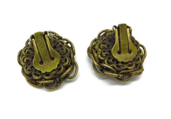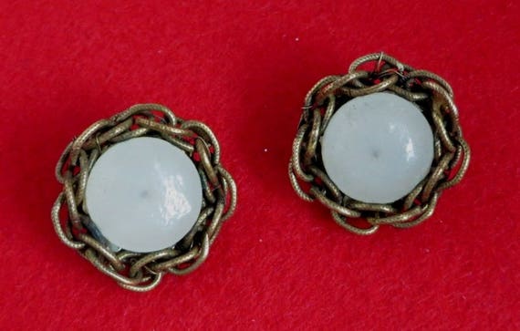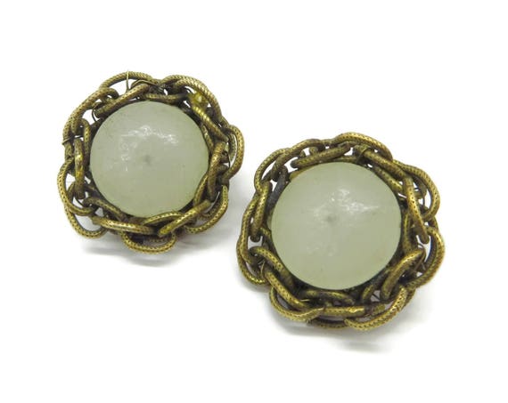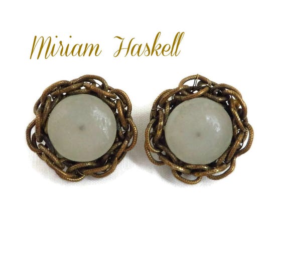 15% OFF coupon on Vintage Miriam Haskell Button Earrings, Mid-Century Designer Braided Brass and Glass Button Clip-ons by LeesVintageJewels