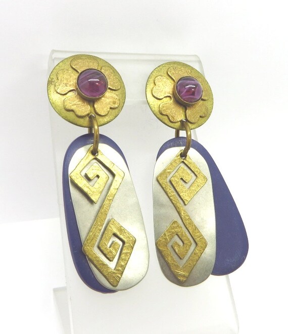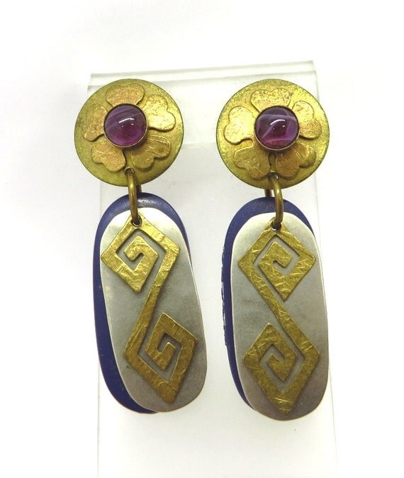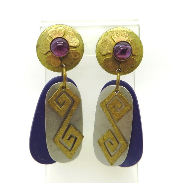 20% OFF coupon on Vintage MOD Dangling Earrings, Goldtone, Silvertone, Purple Clip-on Earrings by LeesVintageJewels