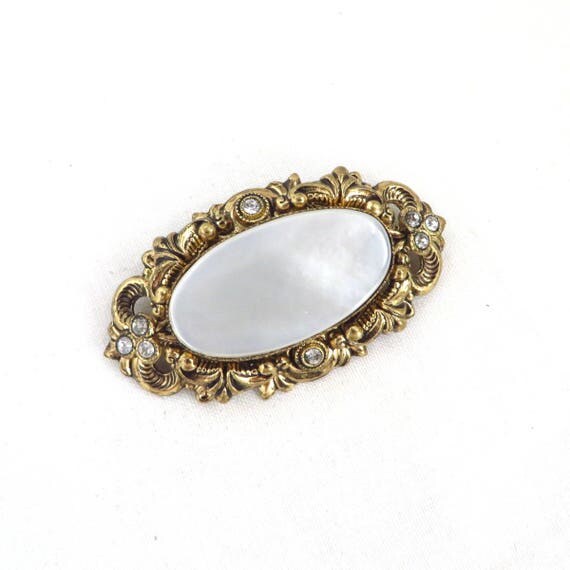15% OFF coupon on Vintage Moonstone Brooch - Victorian Rhinestone Gold Tone Pin, Valentine's Day Gift, Gift Boxed by LeesVintageJewels