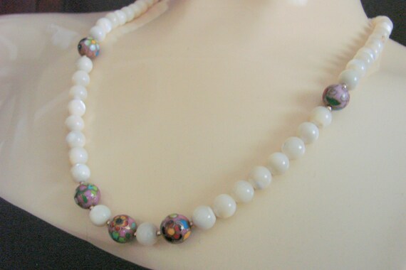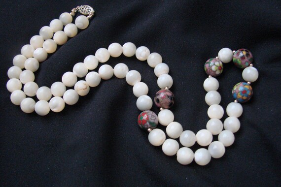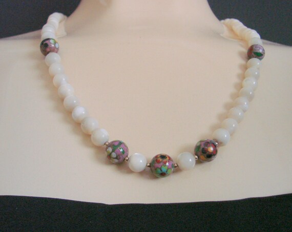 15% OFF coupon on Vintage Mother of Pearl & Cloisonne Bead Necklace / Filigree Clasp / Jewelry / Jewellery