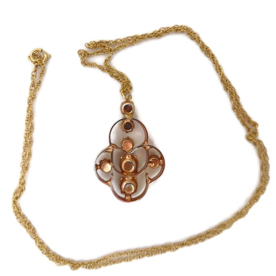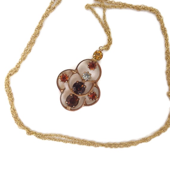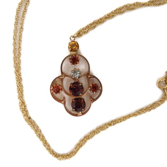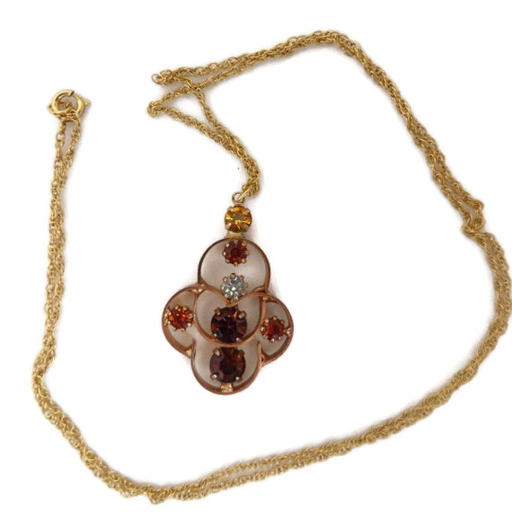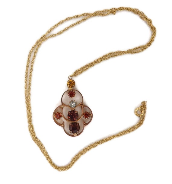 15% OFF coupon on Vintage Orange Rhinestone Pendant, Gold Filled Chain Link Necklace, 24" Length by LeesVintageJewels