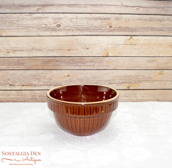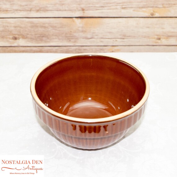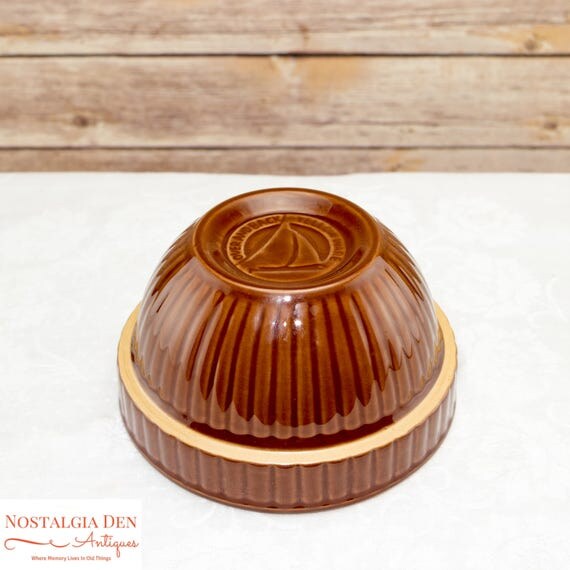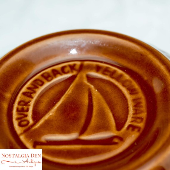 15% OFF coupon on Vintage Over And Back Glazed Yellow Ware Pottery Bowl | Rustic Home Decor by NostalgiaDenClassics