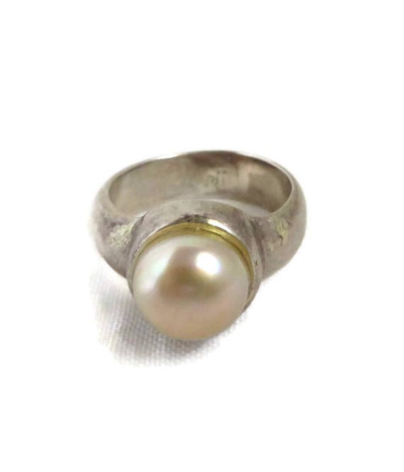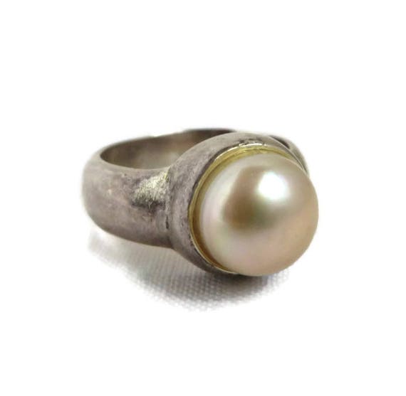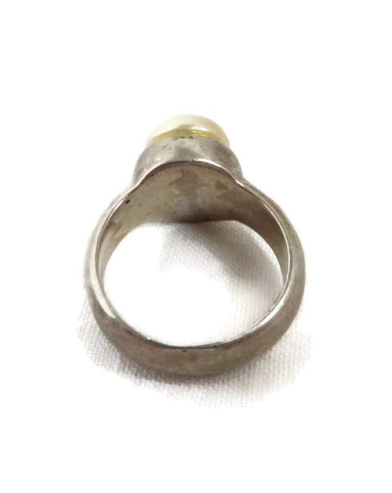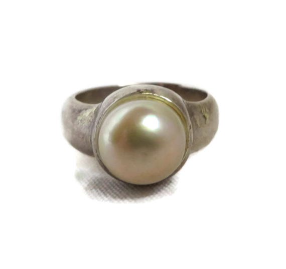 20% OFF coupon on Vintage Pearl Ring Sterling Silver Wide Band Antique Finish Estate Costume Jewelry Ring Size 6 by LeesVintageJewels