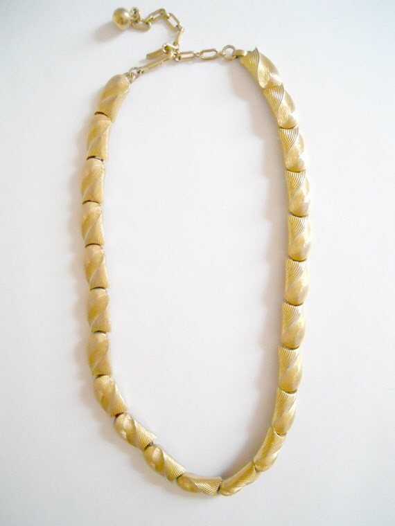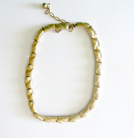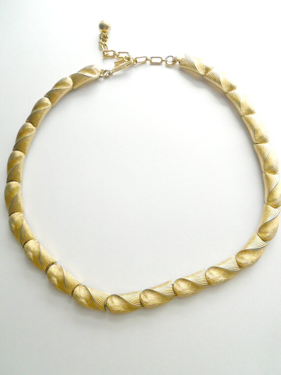 20% OFF coupon on Vintage Trifari Gold Tone Necklace Brushed Gold Tone Choker Signed 14" 1970s Jewelry by LeesVintageJewels