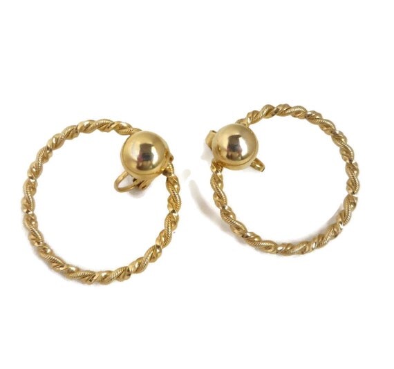 15% OFF coupon on Vintage Twisted Hoop Earrings, Gold Tone Large Hoop Clip-ons