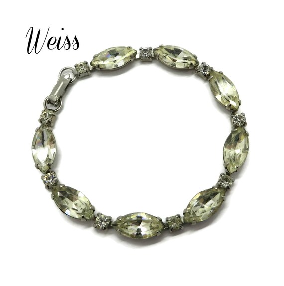 15% OFF coupon on Vintage Weiss Rhinestone Bracelet | Silver Tone Marquise Rhinestone Bracelet | Bridal Jewelry by LeesVintageJewels