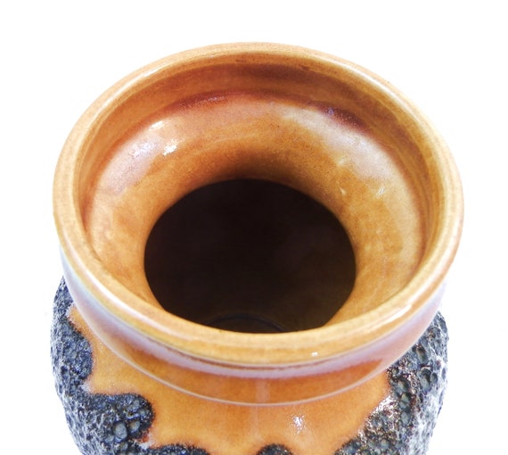 20% OFF coupon on Vintage West German Bay Keramik Mid Century Ceramic Lava Vase with Drips, Amber Black and Eggshell White Glaze, Retro 1960s Pottery by VintageDecorFrancais