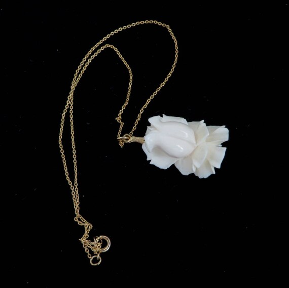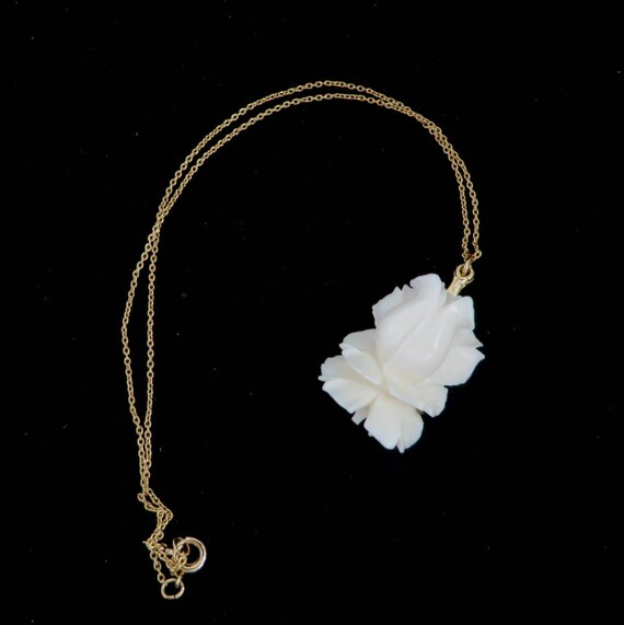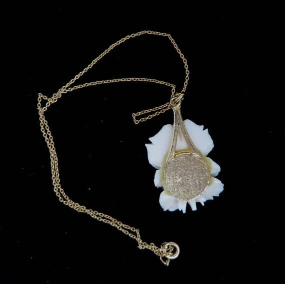 15% OFF coupon on Vintage White Rose Pendant Necklace - Blooming Rose Pendant, Gold Tone Chain Necklace by LeesVintageJewels