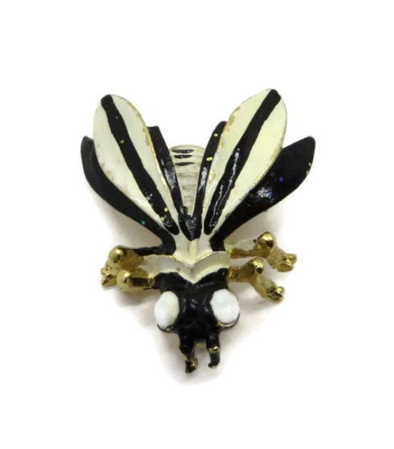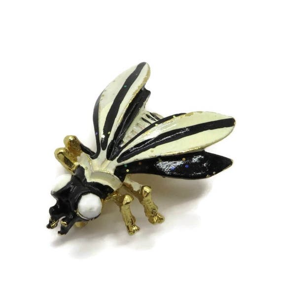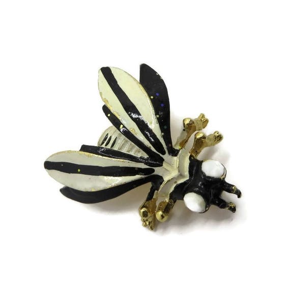 15% OFF coupon on Weiss Bee Brooch, Vintge Black and Cream Enamel Bee Pin, Gold Tone Wasp Brooch by LeesVintageJewels