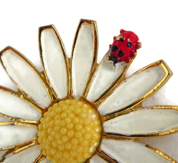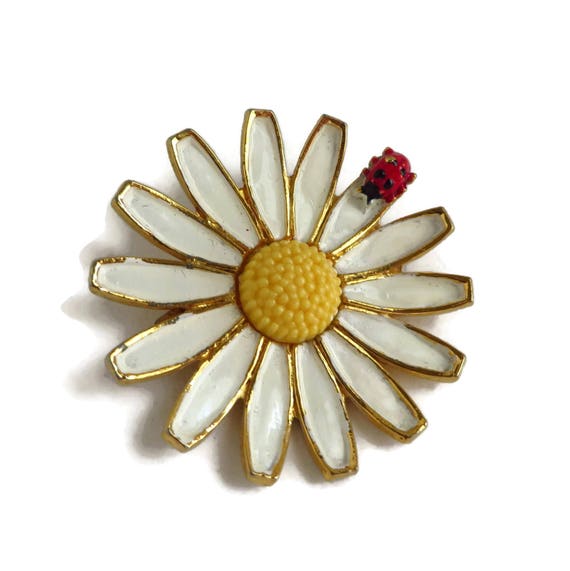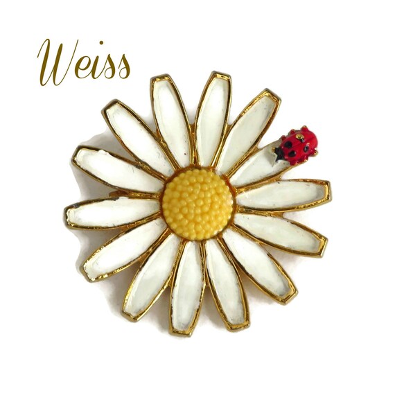 15% OFF coupon on Weiss Daisy Brooch, Vintage White and Yellow Pin, Ladybug Pin, Signed Designer Jewelry, Gift idea, Gift Box by LeesVintageJewels