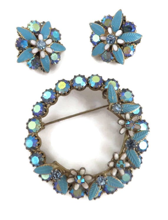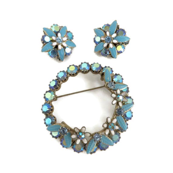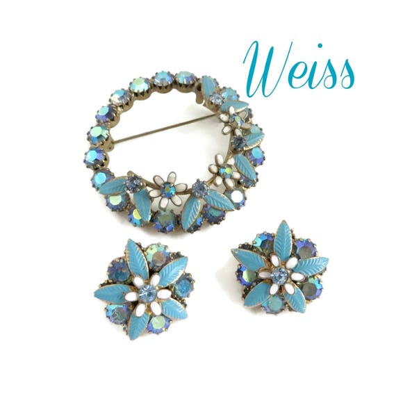 15% OFF coupon on Weiss Demi Parure Brooch and Earrings Set Vintage Weiss Jewelry Signed Weiss Jewelry by LeesVintageJewels