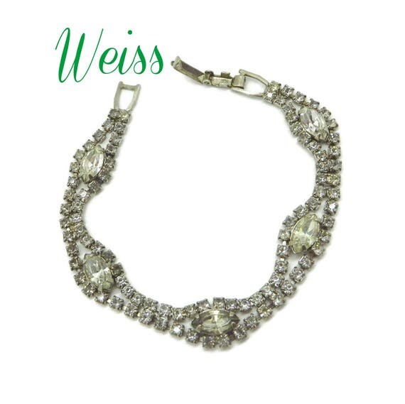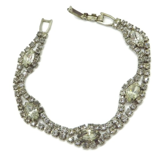 15% OFF coupon on Weiss Marquise Bracelet - Vintage Rhinestone Bracelet - Double Row Chaton Marquise Rhinestones Bridal Jewelry, Gift for Her by LeesVintageJewels