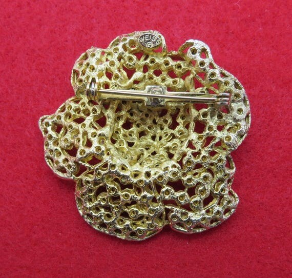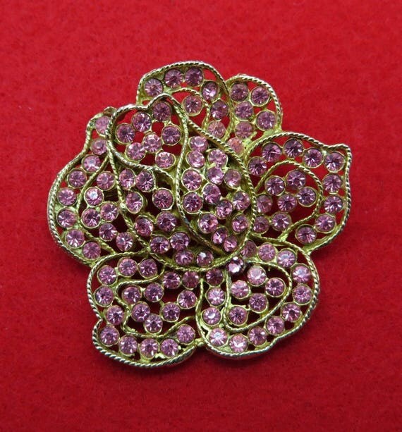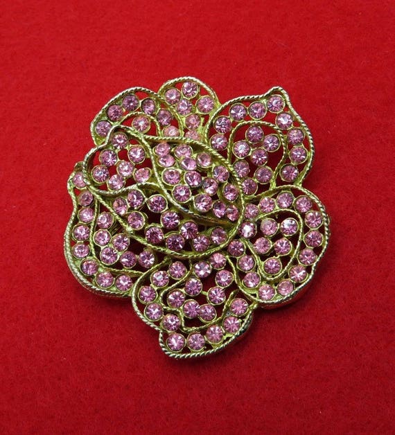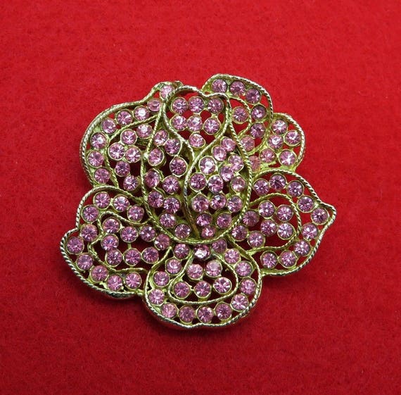 15% OFF coupon on WEISS Pink Rhinestone Brooch Vintage Designer Signed Gold Tone Flower Pin Estate Runway Gift Idea by LeesVintageJewels