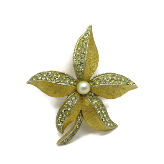 20% OFF coupon on Weiss Poinsettia Gold Tone Rhinestone Faux Pearl Vintage Brooch by LeesVintageJewels