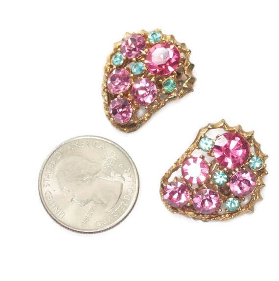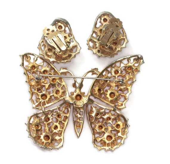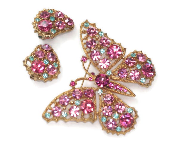 15% OFF coupon on Weiss Rhinestone Butterfly Brooch Earrings Pink Blue Gold Tone Vintage by PastSplendors