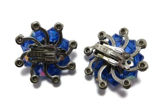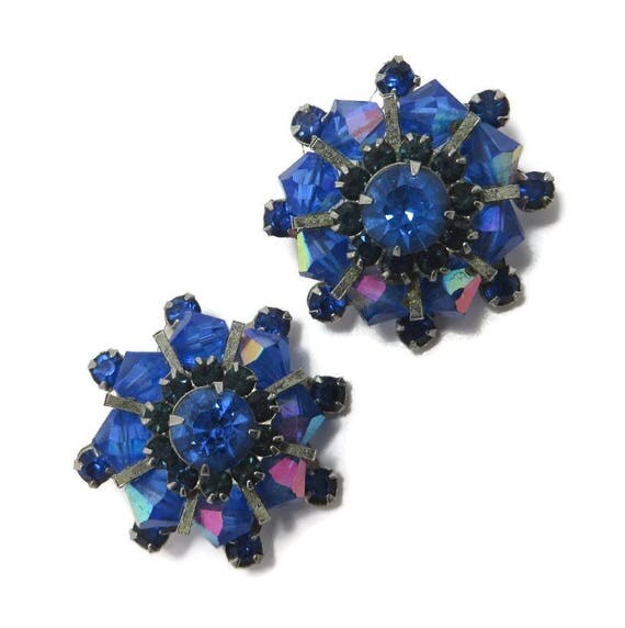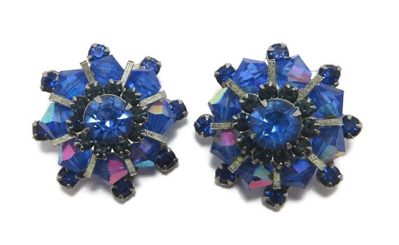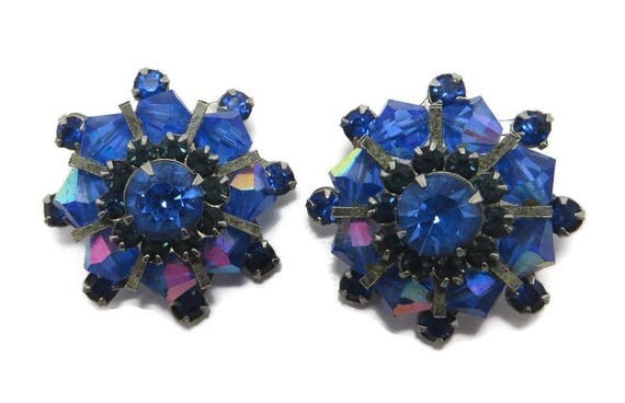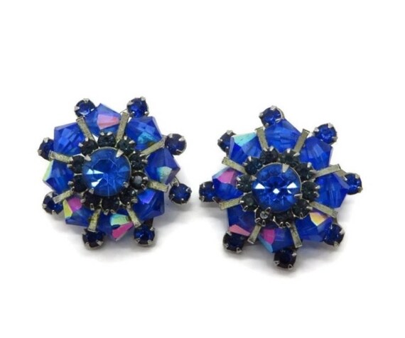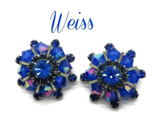 15% OFF coupon on Weiss Royal Blue Rhinestone Earrings, Vintage AB Rhinestone Clip-on Earrings, Signed Weiss Jewelry by LeesVintageJewels