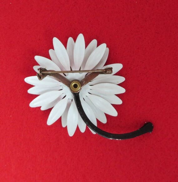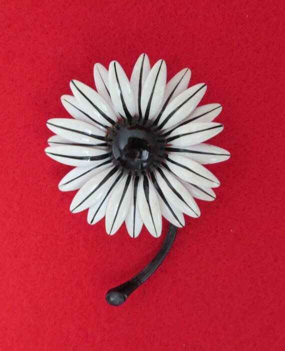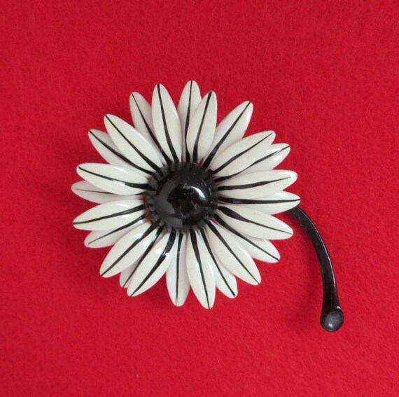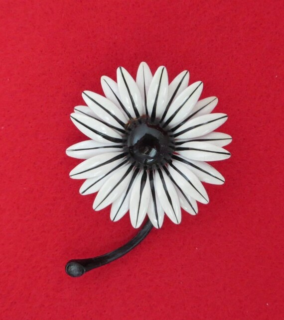 20% OFF coupon on White Black Enamel Daisy Pin, Vintage Retro Flower Brooch Spring Summer Estate Costume Jewelry by LeesVintageJewels